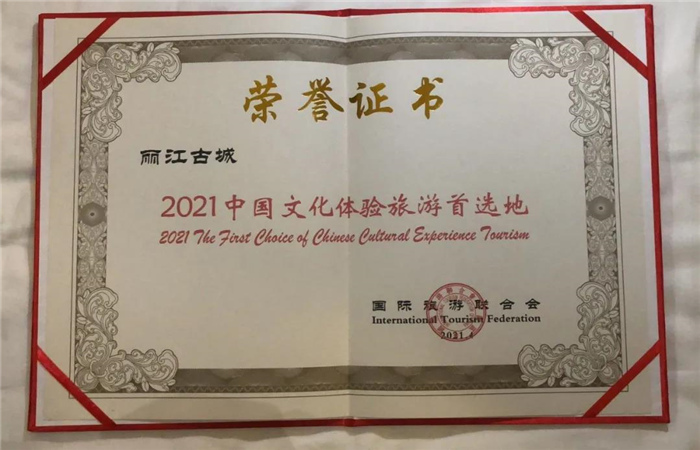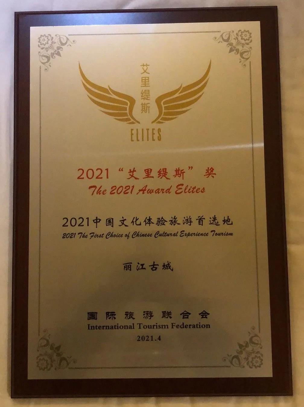 4月24日,在第四屆國際旅游年會上,麗江古城榮獲“艾里緹斯”國際大獎,入選“2021中國文化體驗(yàn)旅游首選地”。