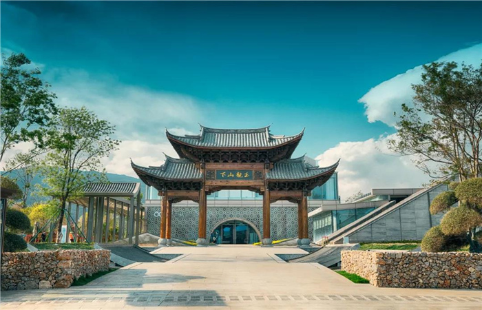 從展示中心青瓦屋頂眺望敦厚的雪山跟閃著金光的中濟(jì)海,仁者樂(lè)山智者樂(lè)水的感受油然而生。