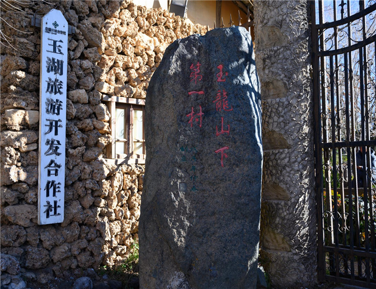 玉湖村就坐落在玉龍雪山腳下,從白沙古鎮(zhèn)開(kāi)車(chē)過(guò)去10多分就可以到,公交17路和6路也可以到玉湖村廣場(chǎng)。如今的玉湖村也有一定程度的旅游開(kāi)發(fā),好在并不嚴(yán)重,依然保持著最初的風(fēng)貌,在玉湖村廣場(chǎng)旁可以看到這塊石碑,石碑上刻有“玉龍山下第一村”七個(gè)大字。關(guān)于玉湖村的建村歷史,并沒(méi)有太多的記載,但它的歷史絕對(duì)比白沙古鎮(zhèn)更為悠久,據(jù)說(shuō)早在明代時(shí),木氏先祖就在此開(kāi)挖人工湖、興建避暑夏宮、養(yǎng)鹿場(chǎng)等,而最早生活在這里的人正是為納西王護(hù)宮養(yǎng)鹿的人,為木氏先祖的發(fā)源地之一,在許多納西民歌中也經(jīng)常提到這里的玉湖和雪山鹿場(chǎng)。