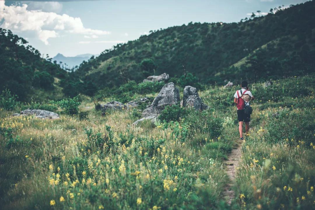 翻過山巒,眼前亂石嶙峋,大大小小的石頭沒有規(guī)律的散落在開闊地上,但在這亂中卻有一種難以描述美。風(fēng)吹過山澗,遠處依稀有鳥兒的鳴叫,只屬于徒步才能發(fā)現(xiàn)的樂趣,大自然給你最原汁原味的感官美。