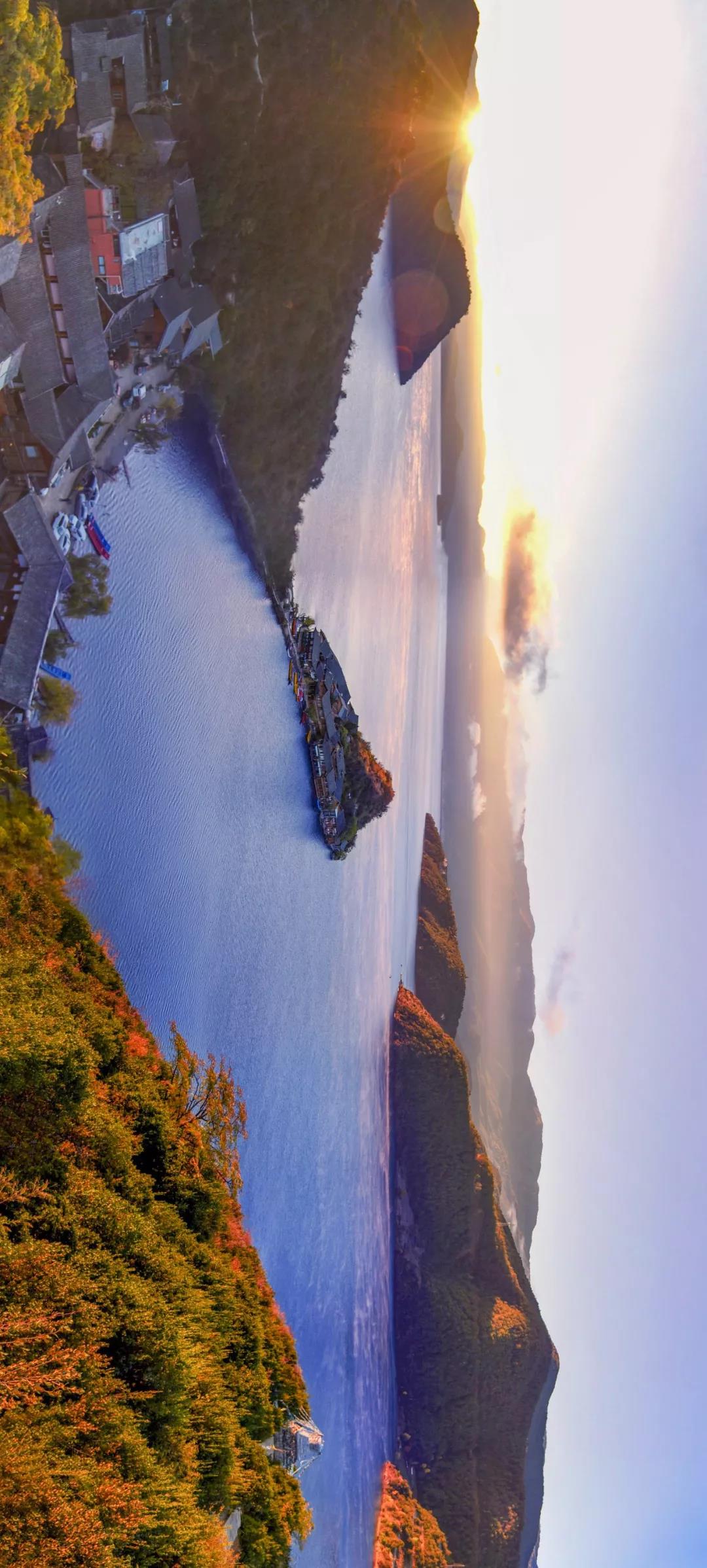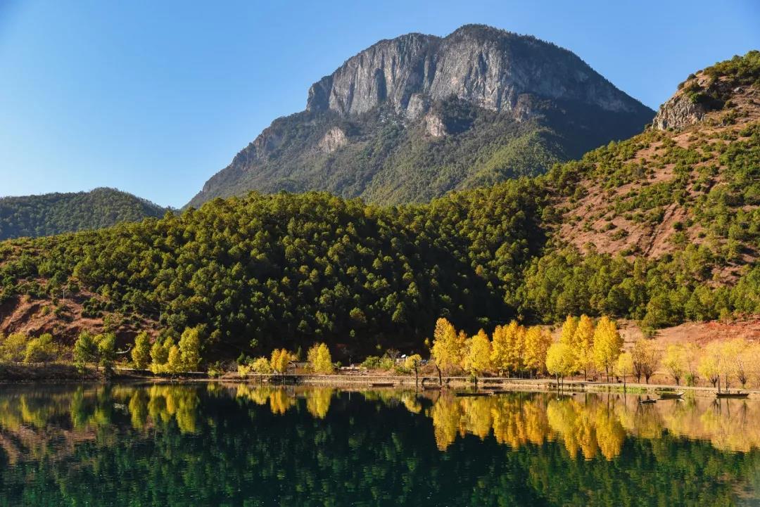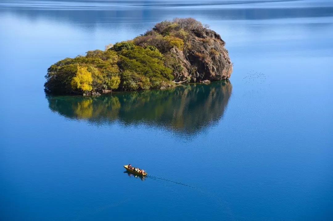 很難相信會有那樣深邃的藍(lán),連萬里無云的天空都為之汗顏。幾座島嶼點(diǎn)綴在明鏡般的湖面上,風(fēng)兒吹過,拉起的縹緲不定的波紋,神女山端坐在對面,僅凝視一秒,就能知道,她有一個(gè)美麗的故事等待講述。