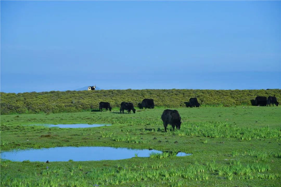 微風(fēng)拂面,藍(lán)天白云,青青草原,清澈湖泊,牛羊成群……在格拉丹,隨處可見美輪美奐的畫卷,在這樣的美景面前,總會(huì)感覺照片不及眼睛看到的美。置身于此,把美景盡收眼底,吸收夾雜著泥土、花香、青草香味的空氣,切身感受大自然的神奇與美,你會(huì)不禁感慨——“人間值得”。