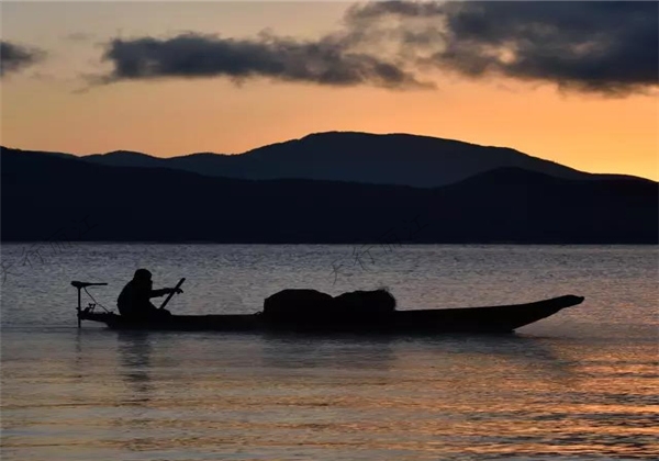 清澈的瀘沽湖一到傍晚,就成了一面映襯天空的鏡子。云朵的變換,風(fēng)吹過的痕跡,統(tǒng)統(tǒng)都被它收入鏡中。與友人走在被橙紅晚霞映透的景色里,只覺前方的路再遠(yuǎn)一點(diǎn),再,遠(yuǎn)一點(diǎn)。只是寂靜無聲,也能走進(jìn)那月色。劃船轉(zhuǎn)湖晚歸的摩梭人在湖面留下火紅的背影,他的樣子很悠閑,因?yàn)樗?,前方必定安穩(wěn),明日必定晴天。瀘沽湖的脫俗已被人說了又說,但去過的人無論再去多少次,也依然會(huì)被它的清流之氣所吸引。