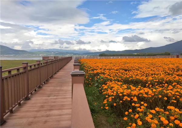 九月來(lái)麗江,答應(yīng)我一定要去看看這些橘色的“?!薄3跚锏柠惤?,不只有連綿的雨,還有各處萬(wàn)壽菊花海。它們?cè)噲D抓住金色季節(jié)的溫度,在冬日到來(lái)之前,燦爛綻放。