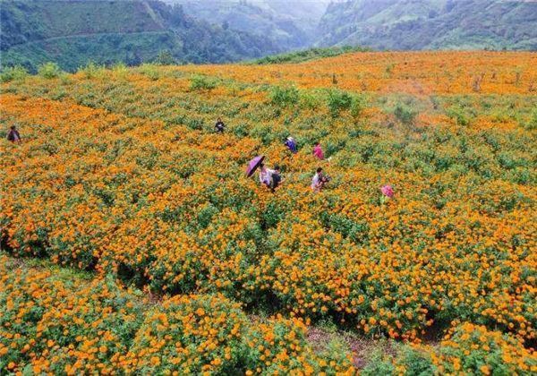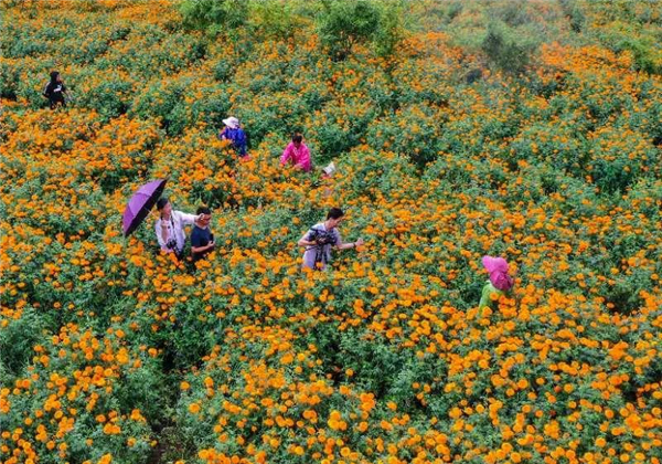 此時(shí),萬(wàn)壽菊進(jìn)入采摘季只見(jiàn)農(nóng)戶臉上洋溢著豐收的喜悅摘花、運(yùn)花來(lái)回忙觀賞花搖身一變成了“致富花”。