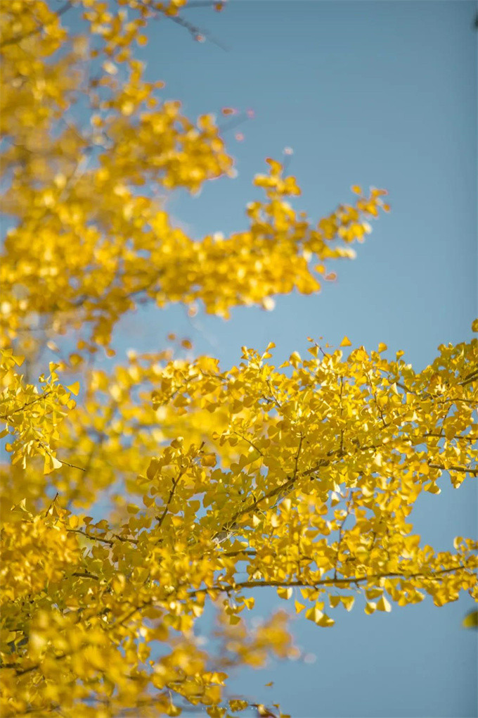 說來奇怪,秋天萬物,似乎誰都不及銀杏討巧。人們會撿著飄落的銀杏葉回家做書簽,也會用心地將幾片葉子合成一朵黃色“玫瑰”贈與愛人,哪怕最不走心的,也會在樹下留念。