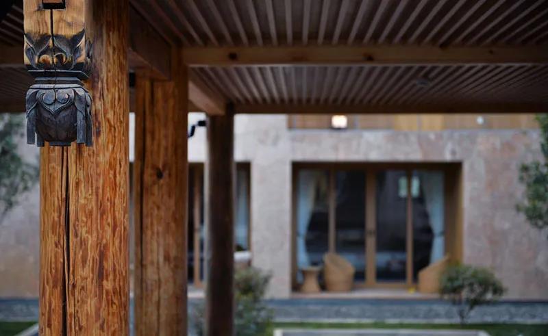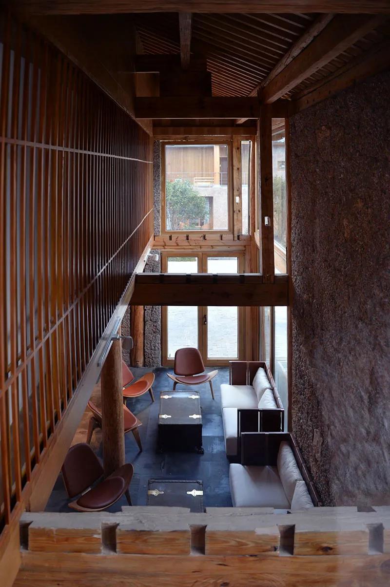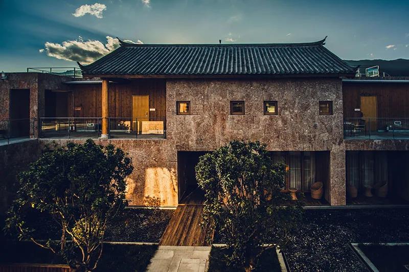 該酒店由日本著名建筑設(shè)計師堤由匡獨家打造,利用粗糲的五花石、質(zhì)樸的杉木、古樸的東巴紙進行創(chuàng)新設(shè)計。木造民宅外墻上,堆砌著產(chǎn)自當(dāng)?shù)氐奈寤ㄊ?,保留了納西建筑的傳統(tǒng)院落式布局,給來到這里的人們一種別樣居住體驗,同時又營造出一種“回家”的溫柔之感。