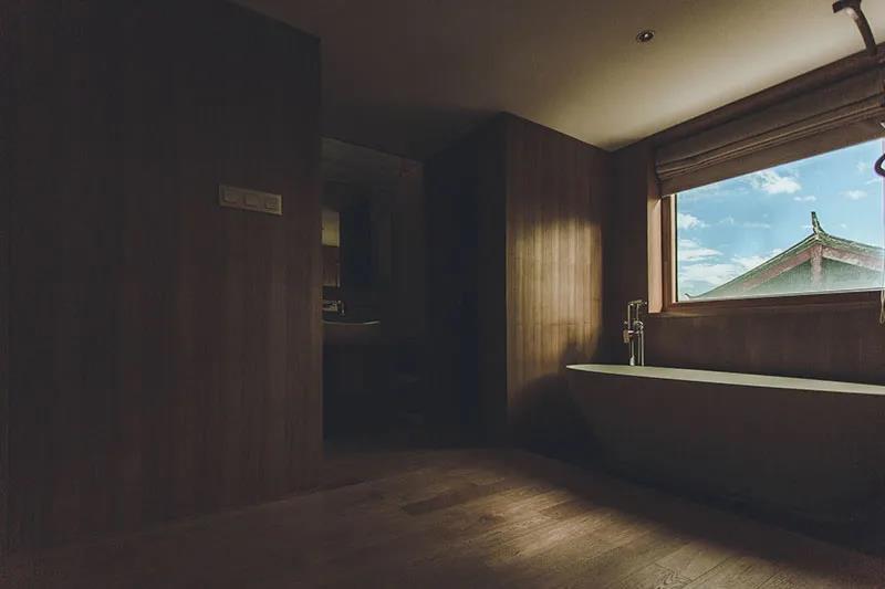 行館客房數(shù)量面積和公共空間面積比例為1:1,這些空間讓陌生的旅客之間有了自然聯(lián)系。在藝文體驗、休憩、飲食、親子時光、與友交談時,旅客都能充分感受到侘寂院落的建筑之美,以及白沙古鎮(zhèn)的秀外慧中。很多旅客最喜歡坐在行館二層室外平臺飲茶休憩一整天,只為欣賞遠處的玉龍雪山。