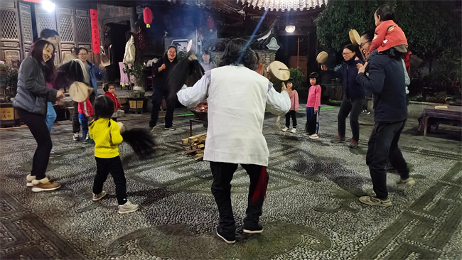 接著走進(jìn)傳統(tǒng)的傈僳族村落,欣賞傳統(tǒng)傈僳族傳統(tǒng)舞蹈和音樂文化,參與充滿民族風(fēng)情的篝火晚會(huì),與當(dāng)?shù)乩圩迕耖g藝人一起學(xué)習(xí)傈僳傳統(tǒng)文化和樂器、服飾,思考和討論如何避免傳統(tǒng)文化的消失。