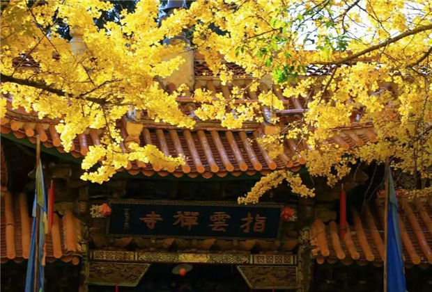 明媚燦爛的黃,藏在拉市壩指云寺的銀杏樹上。在距離麗江古城18公里左右的拉市壩西部有一座指云寺,在10月至11月份,絕對值得一去,寺門前有幾顆銀杏樹,每到這個季節(jié),在陽光的照射下,金燦燦的銀杏葉與古剎相映生輝,煞是好看。