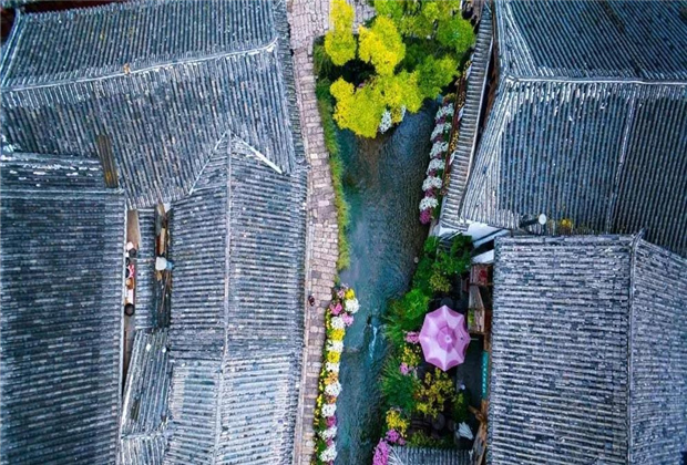 優(yōu)雅清爽的青,藏在雪山下的百年古城中。俯瞰麗江古城,櫛次鱗比的民居瓦房呈現(xiàn)出一片與天地混融的黛青色,宛若一幅巨大的水墨畫,甚為壯觀,身處其中,就能被這幅優(yōu)雅的畫卷給治愈。