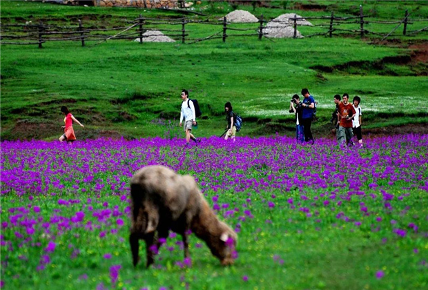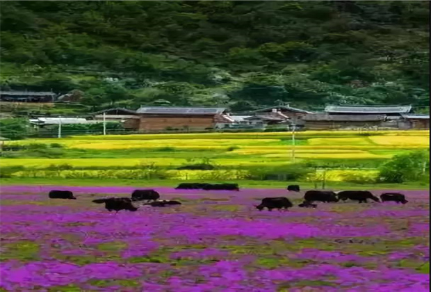 高雅神秘的紫,藏在這座被稱為世外桃源的山間壩子——文海。一汪高原湖水,一座炊煙裊裊的村莊,一片紫紅色的花?!?