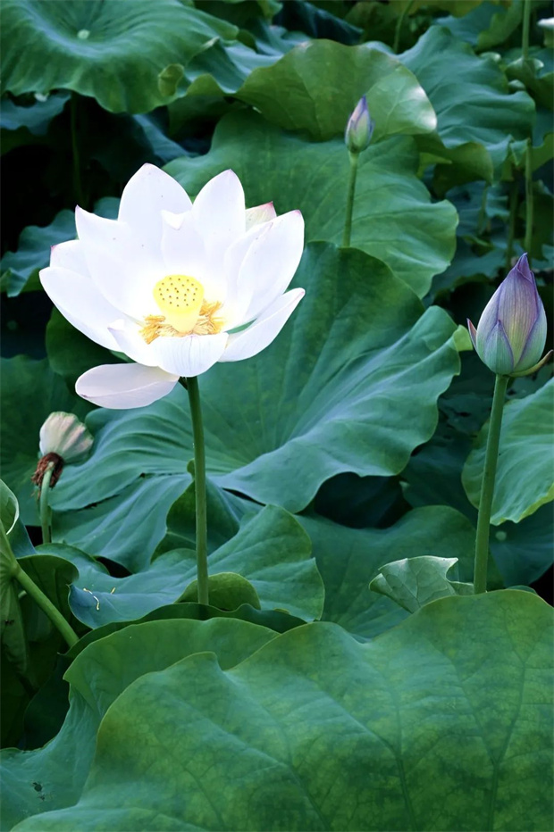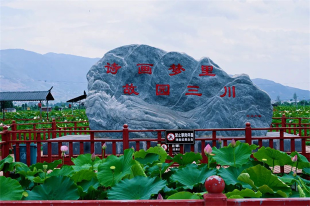 無論是白居易詩中的“我慚塵垢眼,見此瓊瑤英。乃知紅蓮花,虛得清凈名”,還是李商隱筆下“惟有綠荷紅菡萏,卷舒開合任天真”,盡在三川荷塘中。