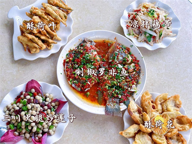 跟隨導(dǎo)航繼續(xù)前進(jìn)抵達(dá)翠湖村,不用去查找攻略,也不用多家對(duì)比,任憑感覺走進(jìn)荷塘沿岸任意一家農(nóng)家樂,便可品嘗到地道的“全荷宴”。
