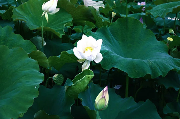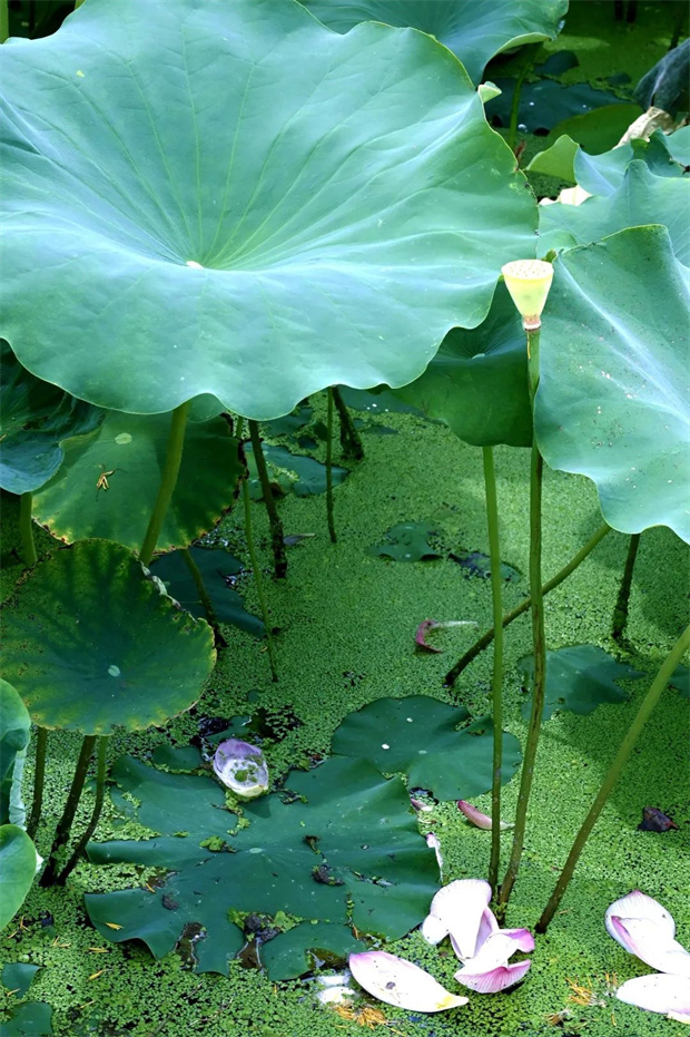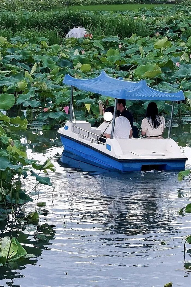 可以和三五好友泛舟于荷塘之中,便能感受白居易《采蓮曲》中的“菱葉縈波荷飐風(fēng),荷花深處小船通?!?/span>