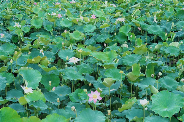 放眼望去萬畝荷塘便有“接天蓮葉無窮碧”。