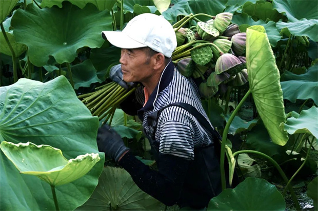 偶然間,發(fā)現(xiàn)塘中采蓮人穿梭,秋日未至,“采蓮南塘秋,蓮花過人頭”之景,在盛夏的三川亦能看到。