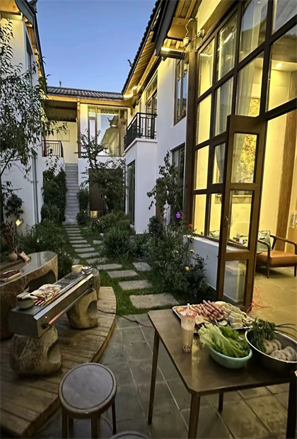 這幾天和客棧的老板和住客們一起唱歌,火鍋。燒烤,在客棧三樓欣賞玉龍雪山小在花園里和四只狗狗嬉戲打鬧,