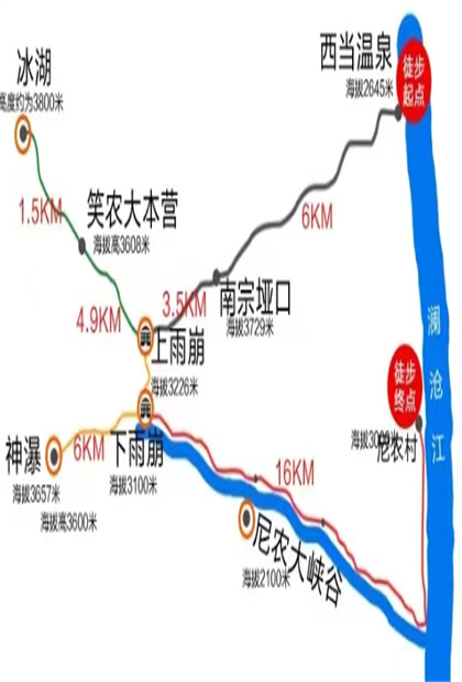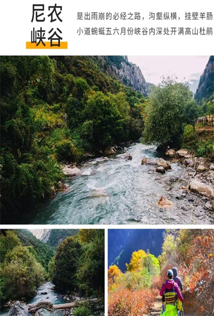 穿越尼龍峽谷父體驗絕望下坡出雨崩得體驗下尼龍線,雪山峽谷叢林的風景在這條線上能一次看個夠。特別是最后1/4的路段
