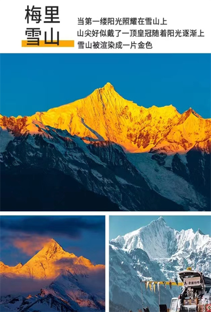 女峰和五冠峰,近距離瞻仰梅里雪山的神跡。每當日出日落時分芒與山峰的雪白