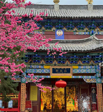 “福國寺”位于玉龍雪山南麓橫嶺巖腳村后的芝山腹地,距麗江古城(大研古鎮(zhèn))約13公里,藏名為“奧米南珠林”,意為“密嚴(yán)解脫苑”,據(jù)說其藏名相傳為都松欽巴的第九個化身十世噶瑪巴大寶法王卻英多杰所賜,漢語即為“解脫林”。 “福國寺”原有主寺五大院,分別為主殿法云閣(又名五鳳樓)、門樓解脫林、兩座護(hù)法院和一座活佛院。另有僧房24院,最興盛的時期有住寺僧約200人,年收地租1000余石。