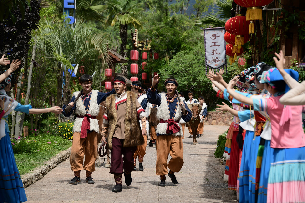 景區(qū)內(nèi)大型歌舞《麗江千古情》、大型實(shí)景演出《麗江戀歌》、實(shí)景體驗(yàn)劇《大地震》以及《木府招婿》《鍋莊狂歡》等演藝秀輪番上演,精彩紛呈。