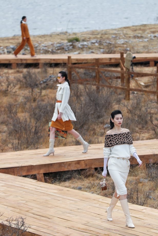 在延續(xù)XG時(shí)尚優(yōu)雅的品牌風(fēng)格之上增添了荒野游牧風(fēng)的墨彩,模特置身于無垠的原野和牧場之中游走自如,將時(shí)下潮流和自然藝術(shù)糅合、碰撞,近300米原生態(tài)實(shí)木T臺(tái),100多頭牛羊群,近6000米平方的秀場空間。最終匠心鑄造了一個(gè)天然的舞臺(tái)和恢弘秀場,以多平臺(tái)多渠道的呈現(xiàn)方式令場內(nèi)外觀眾都達(dá)到了最佳視覺體驗(yàn)。