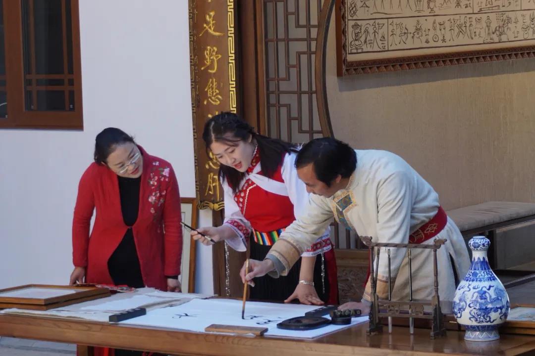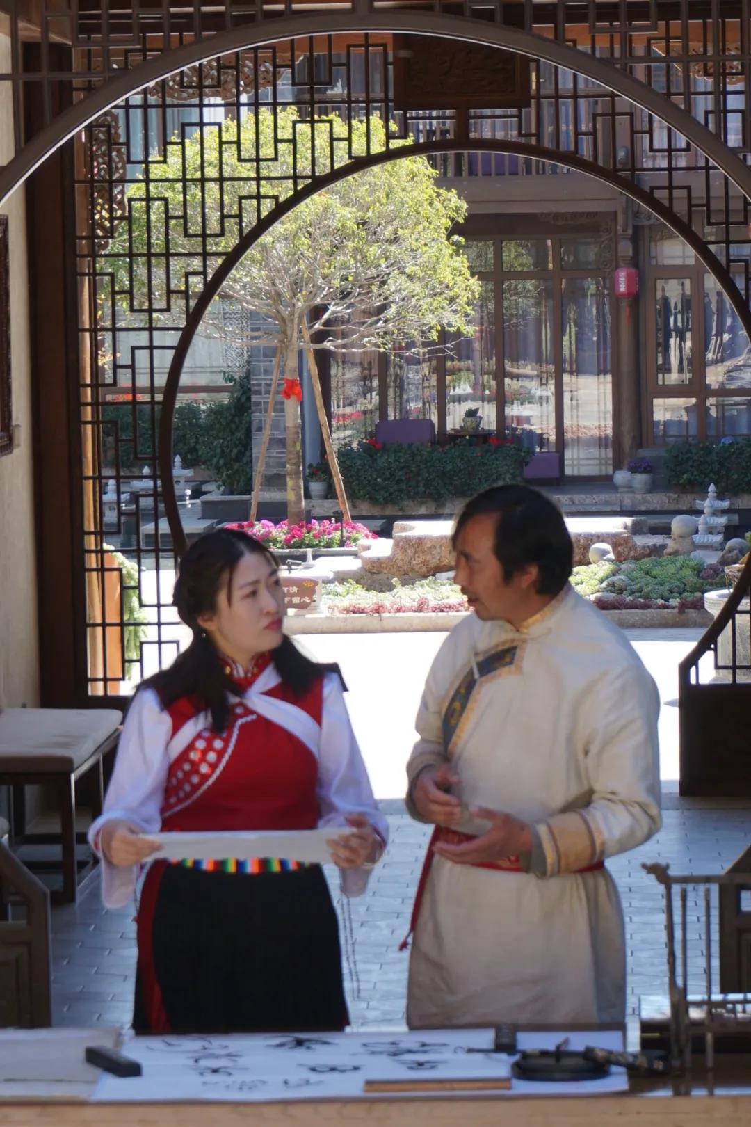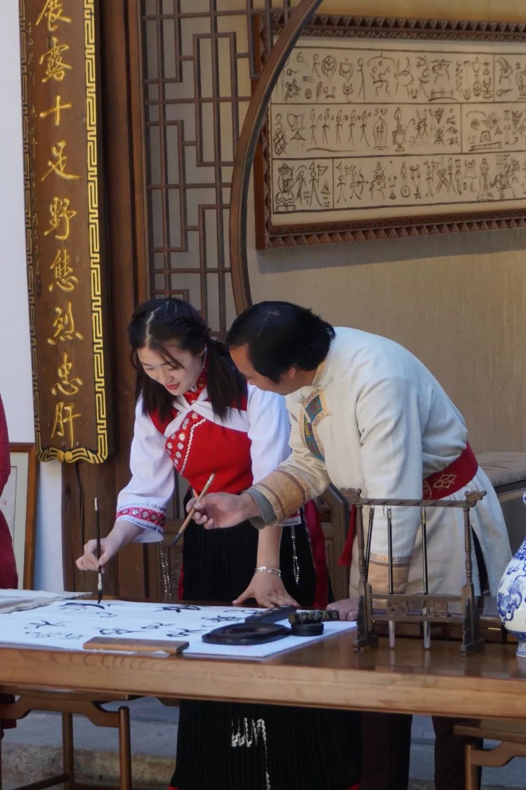 這一天要穿著得體,儀式感滿滿,因?yàn)橐蜄|巴文化傳承者、納西象形文字繪畫體驗(yàn)館館長和閏元老師,在泊心庭院學(xué)習(xí)東巴文化。
