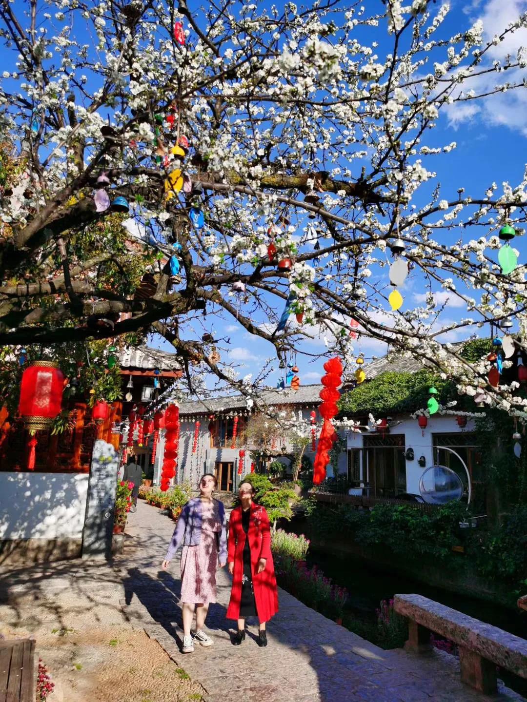 三月的麗江古城,百花盛開,楊柳依依,流水潺潺。