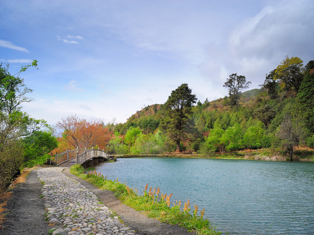 景區(qū)海拔2800米左右,主要景點有巨石壁字、太子洞、觀音巖、雪松庵、千年古樹、上下深潭瀑布、玉湖倒影為玉龍雪山十二景之首。