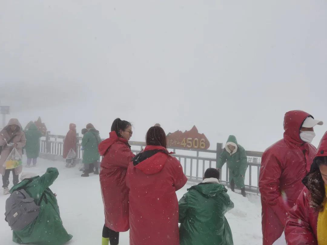 乘坐索道來到冰川公園,飄飄灑灑的雪花,讓前來登山的市民、游客驚喜不已。大家難以掩飾內心的激動,紛紛沉醉在這場春雪里。
