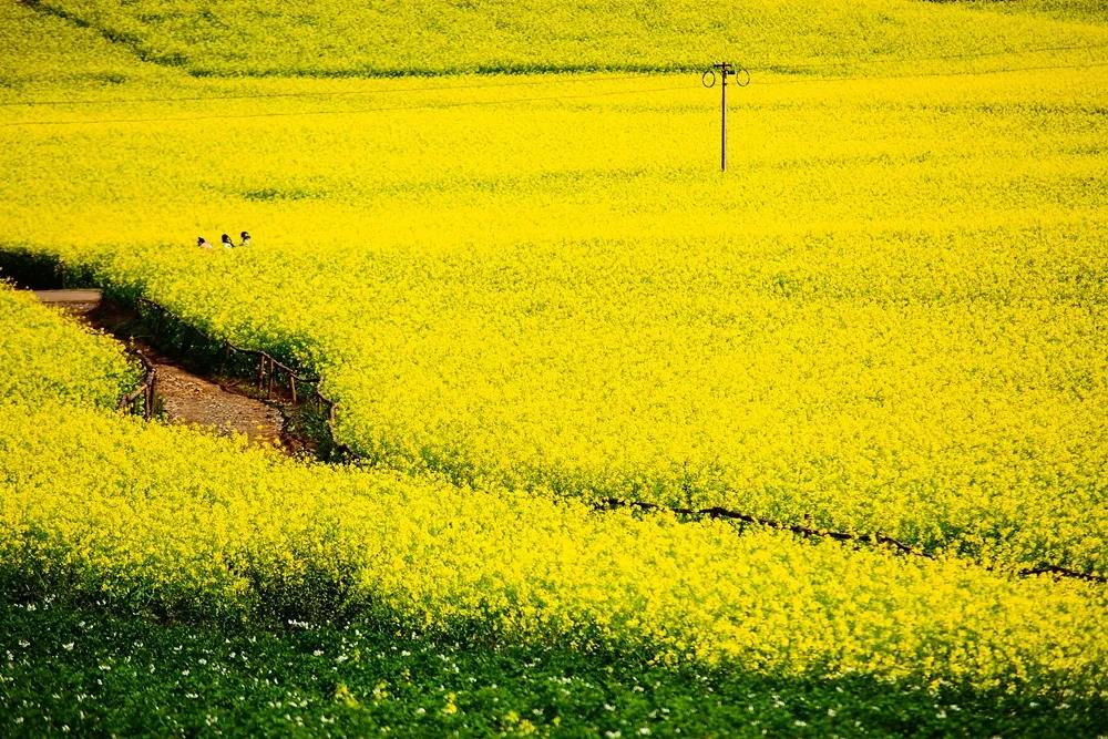 清明左右,自駕驅(qū)車來到在束河的西山游路,這時(shí)的油菜花已經(jīng)大片大片的盛開,如果你是我,就應(yīng)該放下手上的工作,去看看束河的油菜花海,站在田梗處,看一看這里的山山水水,似乎也似被穿上了一層金色的外衣,就連田野上的一抹翠綠,也成了這片花海的點(diǎn)綴。成了生機(jī)勃勃的宣傳詞,如青春一般,讓人不舍。